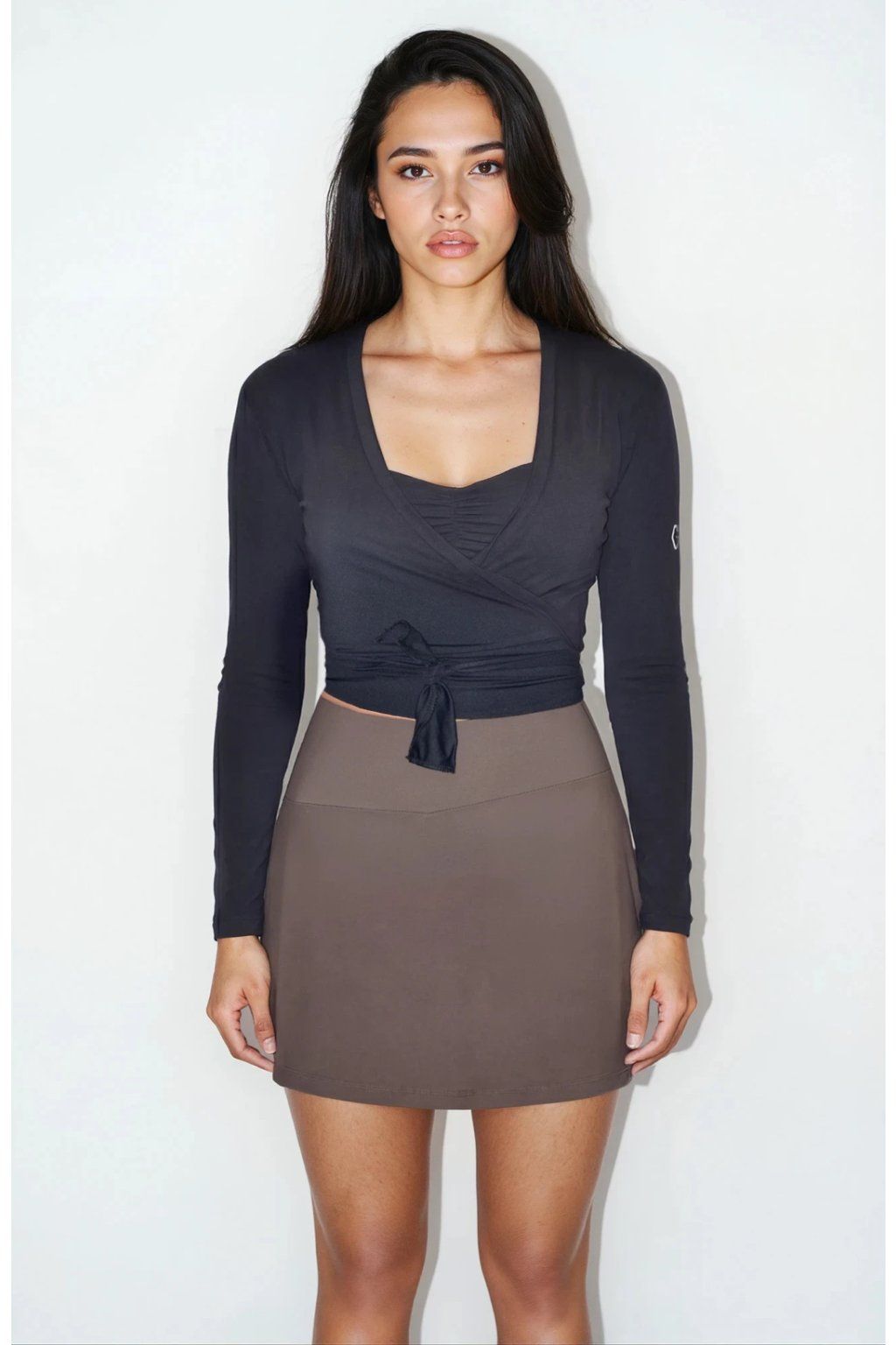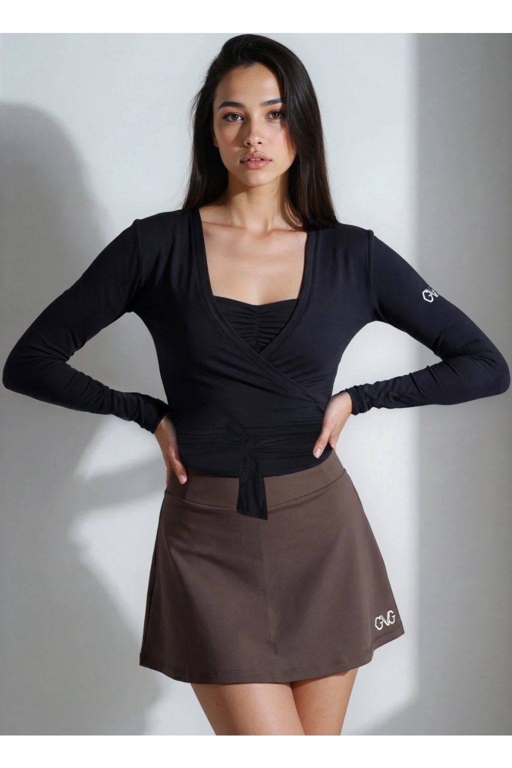 Zavinovací černé tričko Maia z kolekce GVG KALLISTA kombinuje eleganci, ženskost a maximální pohodlí při pohybu. Měkký elastický materiál se dokonale přizpůsobí postavě, zatímco zavinovací střih krásně zvýrazní pas a vytvoří lichotivou siluetu. Ideální pro fitness, jógu i stylové sportovní outfity.